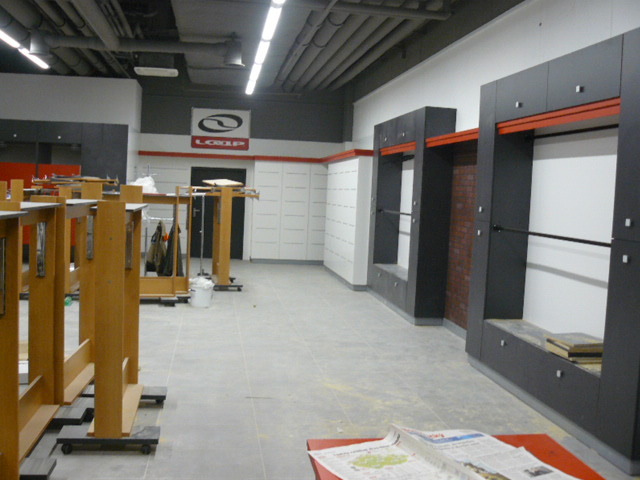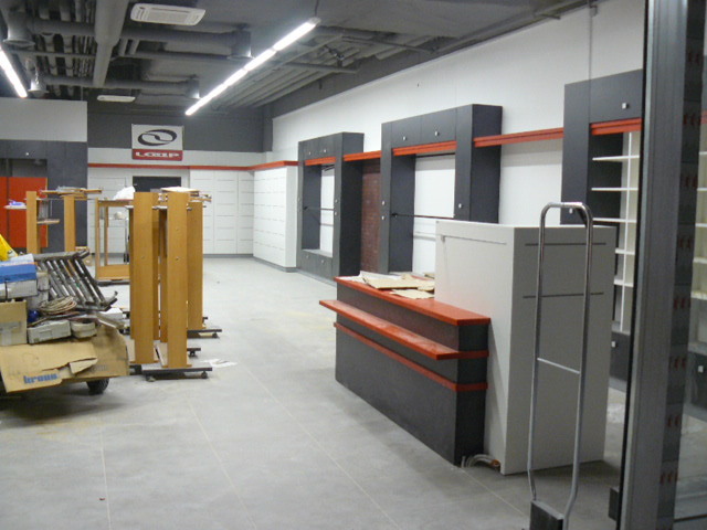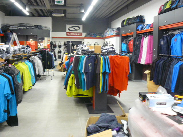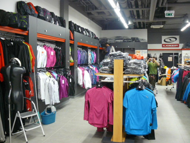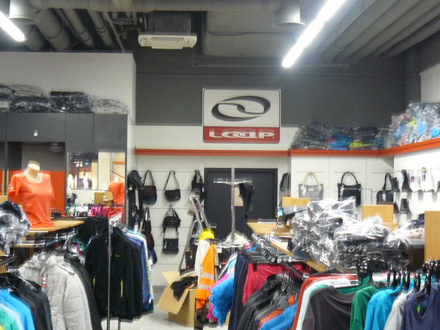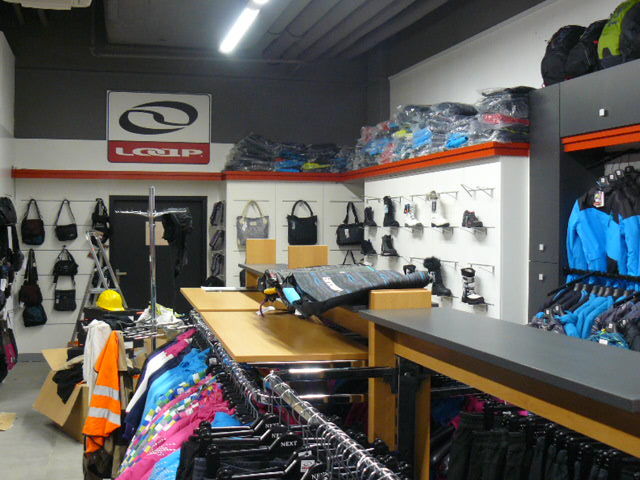 Vybavení interiéru obchodu nábytkem se sportovním oblečením značky Loap v Galerii Šantovka v Olomouci.
